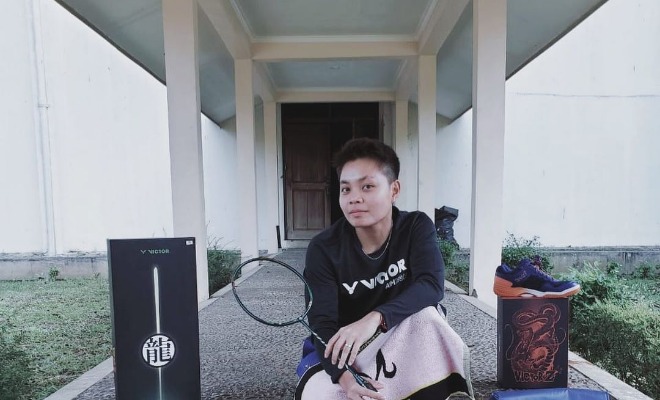 3. Aksinya saat berlaga di lapangan bulu tangkis